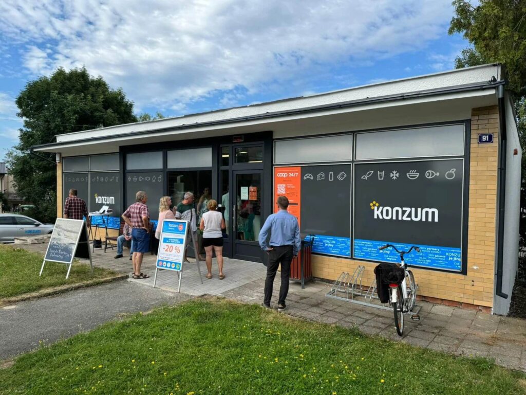 Mimo stavebních prací došlo i ke změně fit outu zahrnujícího regály, chladící a mrazící zařízení, osvětlení apod. Mezi nově implementované technologie patří např. systém umožňující autonomní vstup a výstup z prodejny, verifikace pomocí Bankovní identity, kamerové systémy, dohledové centrum nebo samoobslužné pokladny. Navzdory prvotním obavám došlo k nahrazení pultového prodeje lahůdek chladícími boxy, které přispěly k úspornému provozu a rozšíření sortimentu zboží. Jako bonus KONZUM pro zákazníky připravil po celý první měsíc po otevření 20% slevu na každý nákup.