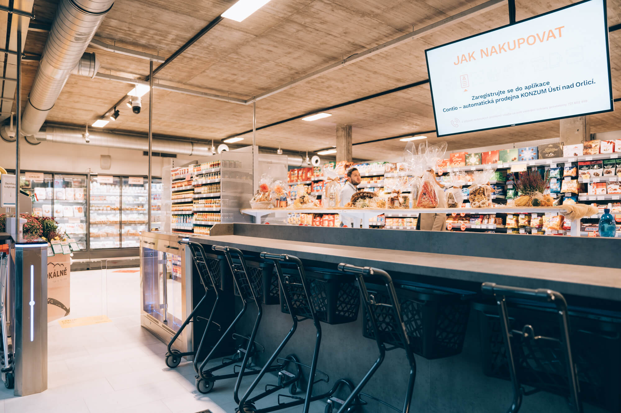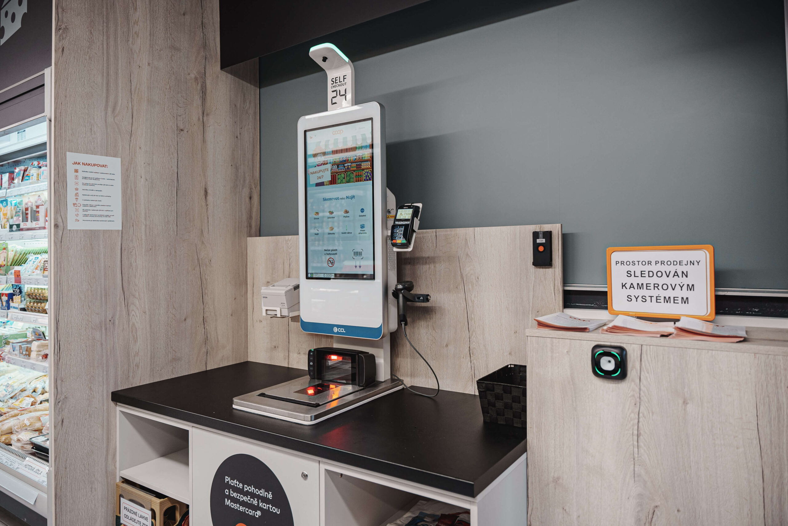Technologický ekosystém, speciálně vyvinutý pro podmínky českého trhu, se skládá z centrálního informačního systému pro řízení bezobslužné prodejny, zákaznické mobilní aplikace, bankovní identity, pokročilého kamerového systému s podporou AI napojeného na vzdálené dohledové centrum, samoobslužné pokladny a autorizovaného řízení přístupů a výstupů včetně dostupnosti potřebných analytických dat a statistik.